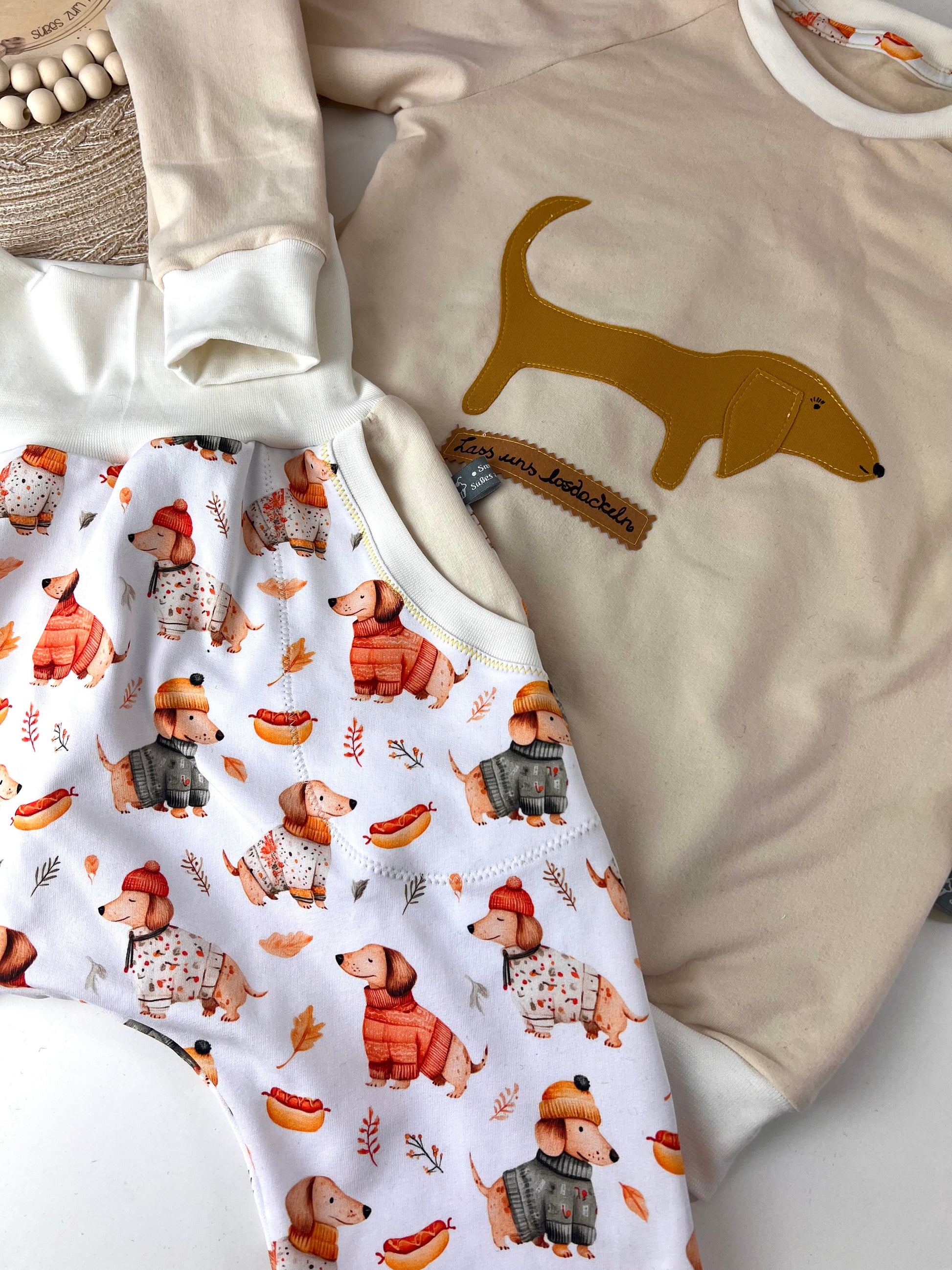 Dackel Kinder Set | Handmade Pullover & Hose | Bequeme Kindermode mit Hundemotiv | Geschenk für Hundeliebhaber Kinder