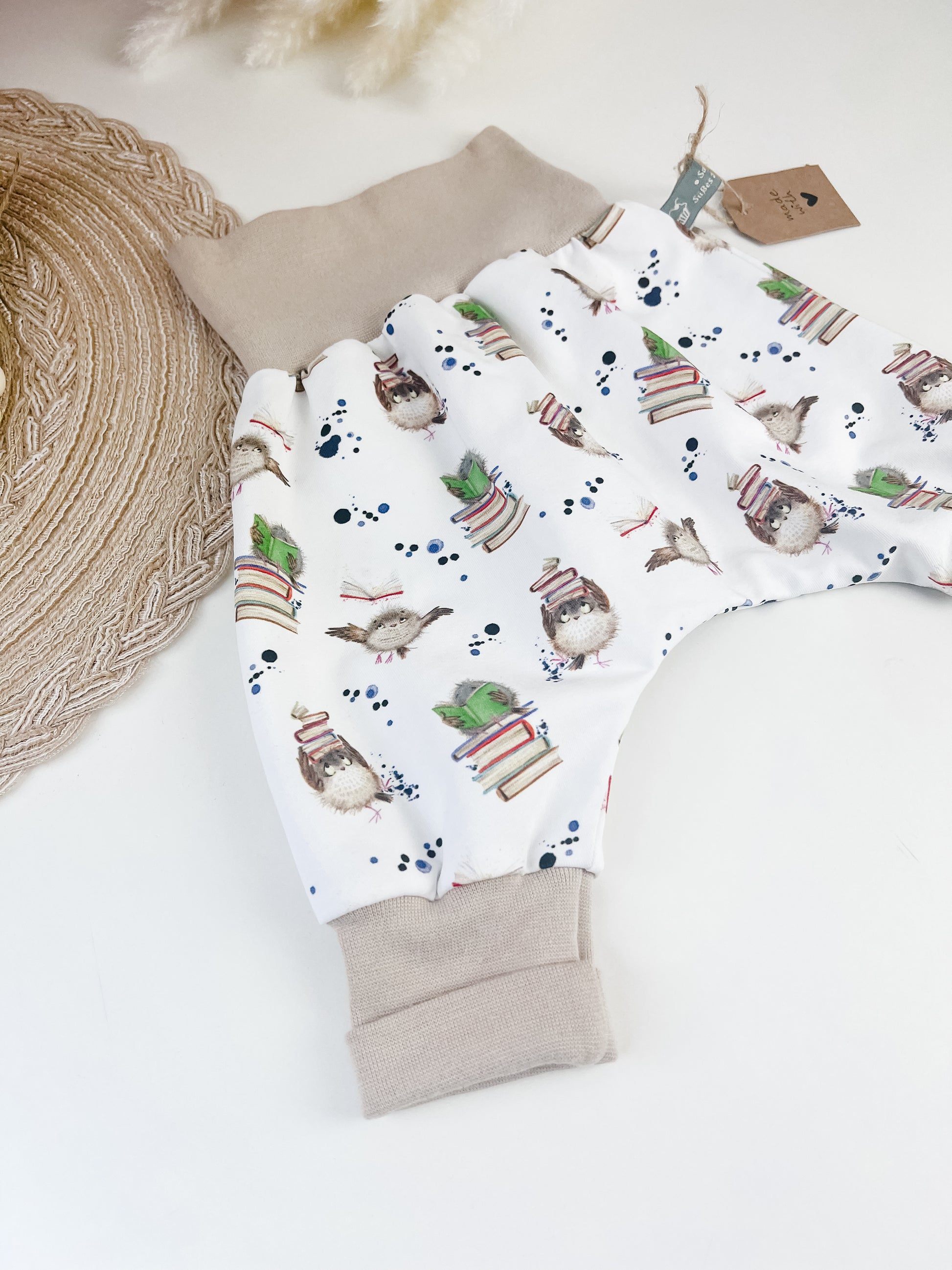 SOFORTKAUF Gr. 56/62 Baby Pumphose mit Eulen Baby Pumphose Babyhose mit Uhu handgemacht Junge Mädchen Newborn Babyoutfit