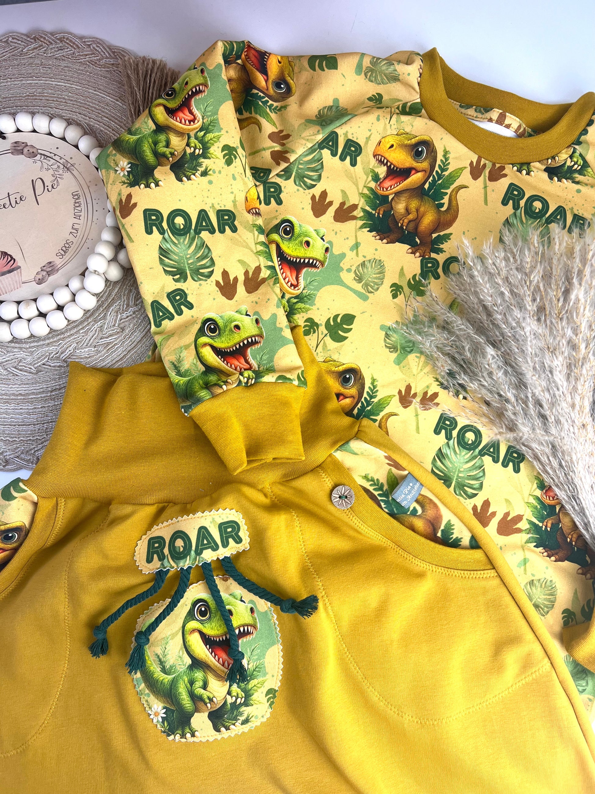 1x Set aus Sweater und Slim Harem Pants mit Applikation und Taschen Gr. 110 Stoff: T-Rex Power Kombistoff: schokobraun Preis: 85,00 EUR